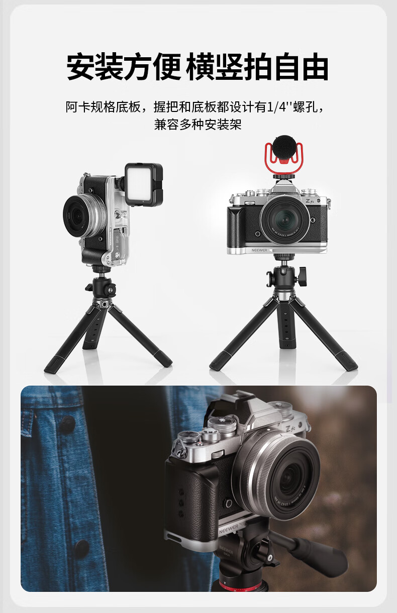 商品名称:纽尔(NEEWER)适用Nikon尼康Zfc相机专用L型板手柄 铝合金竖拍L板复古单反微单握柄配件 尼康Zfc专用L型手柄