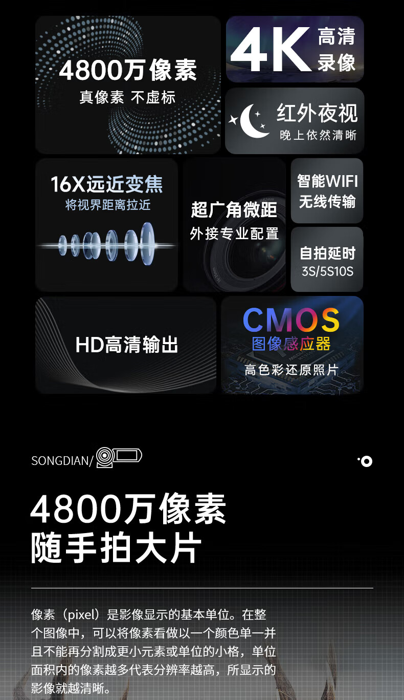 商品名称:松典(SONGDIAN) dv数码摄像机便携式vlog拍录一体专业手持4K高清红外夜视 官方标配 128G 内存